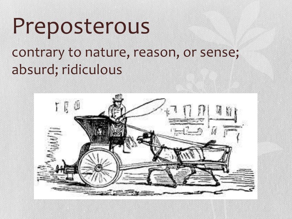 Preposterous contrary to nature, reason, or sense; absurd; ridiculous