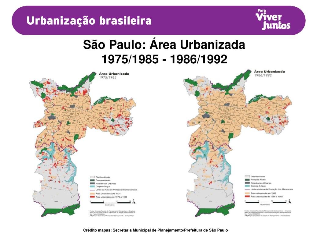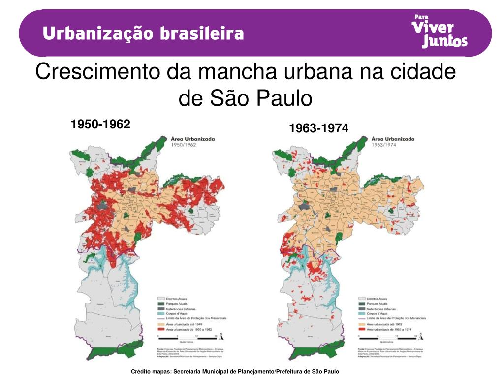 Crescimento da mancha urbana na cidade de São Paulo 1950-1962 1963-1974 Crédito mapas: Secretaria Municipal de Planejamento/Prefeitura de São Paulo