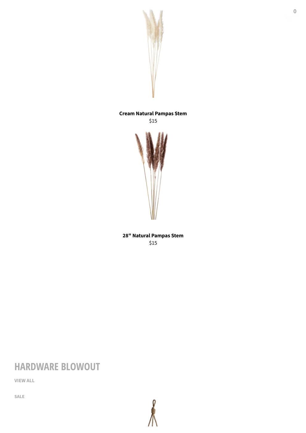 0 Cream Natural Pampas Stem $15 28" Natural Pampas Stem $15 HARDWARE BLOWOUT VIEW ALL SALE