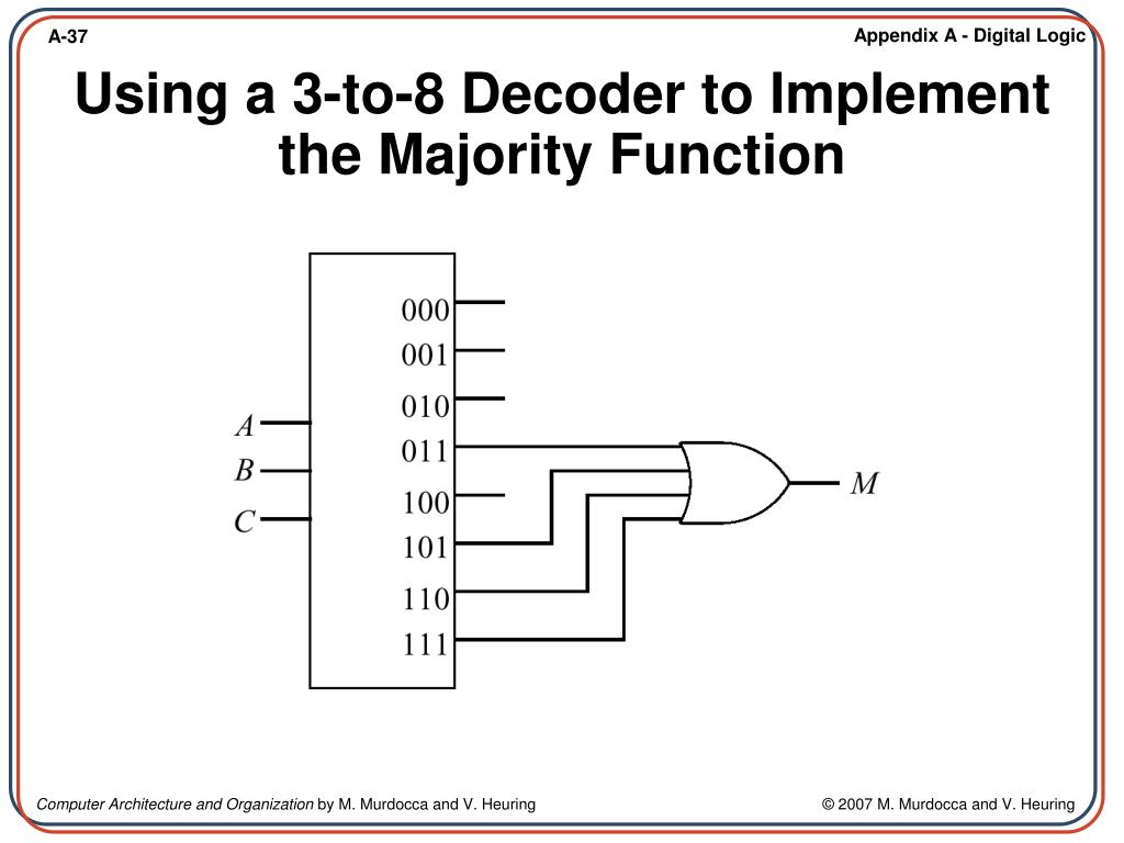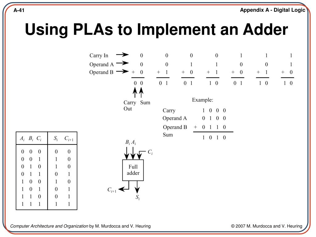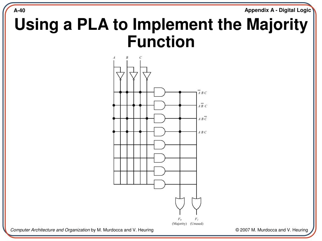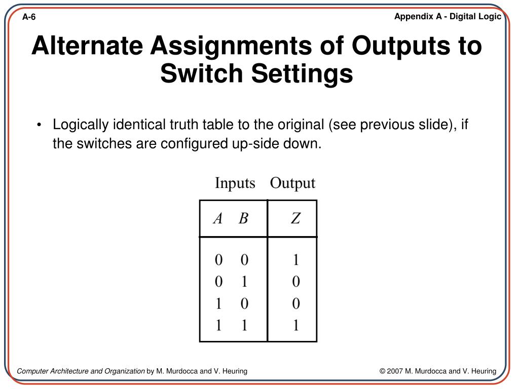 Computer Architecture and Organization Miles Murdocca and Vincent Heuring. Appendix A – Digital Logic. A.1 Introduction A.2 Combinational Logic A.3 Truth Tables A.4 Logic Gates A.5 Properties of Boolean Algebra A.6 The Sum-of-Products Form and Logic Diagrams A.7 The Product-of-Sums Form
