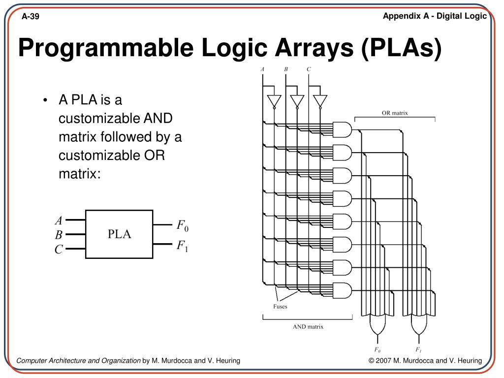 A PLA is a customizable AND matrix followed by a customizable OR matrix: Programmable Logic Arrays (PLAs)