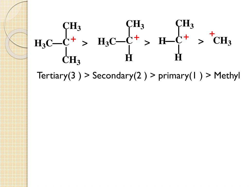 (I) (II) Explanation for “Markovnikov’s rule” The stabilities of carbocation: (I) > (II) Electrophilic addition to an unsymmetri- cally substituted alkene give the more highly substituted carbocation.