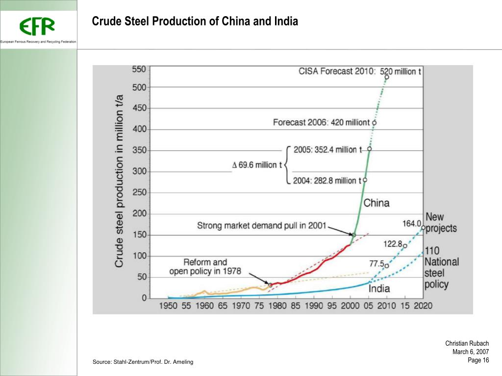 Crude Steel Production of China and India Source: Stahl-Zentrum/Prof. Dr. Ameling