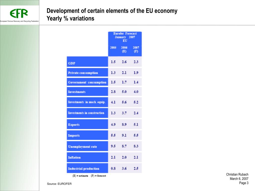 Development of certain elements of the EU economyYearly % variations Source: EUROFER
