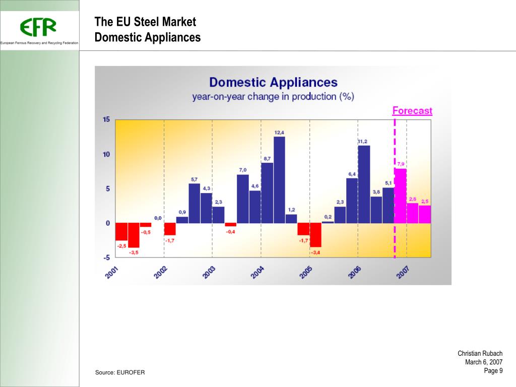 The EU Steel MarketDomestic Appliances Source: EUROFER