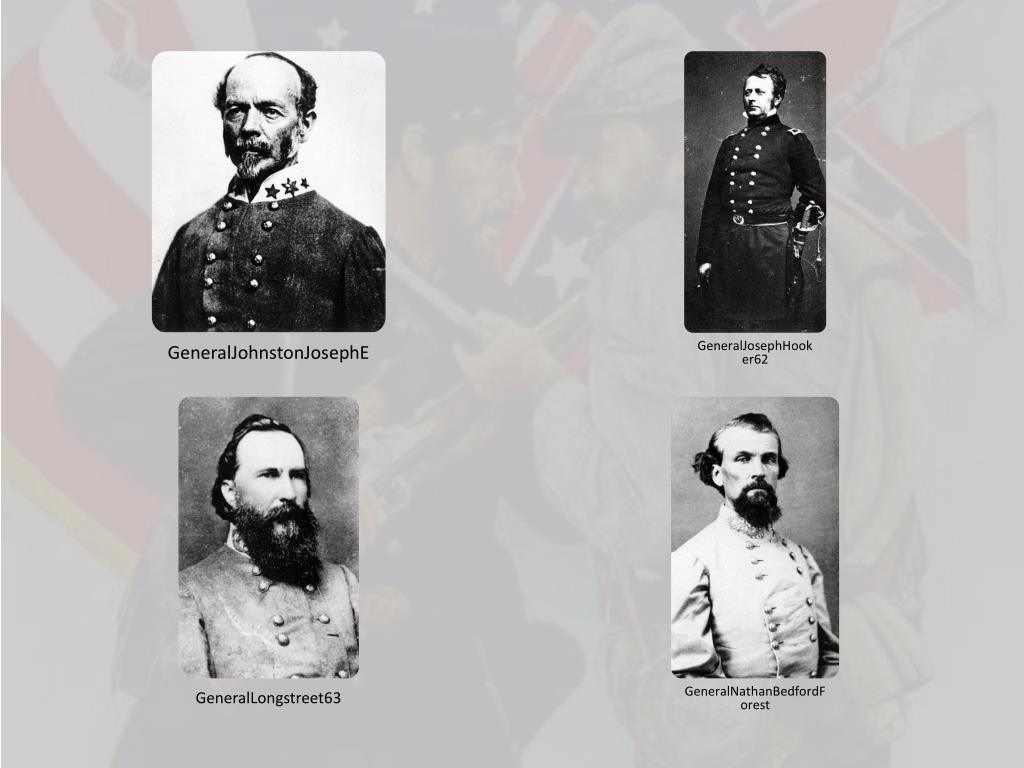 GeneralJohnstonJosephE GeneralJosephHooker62 GeneralLongstreet63 GeneralNathanBedfordForest