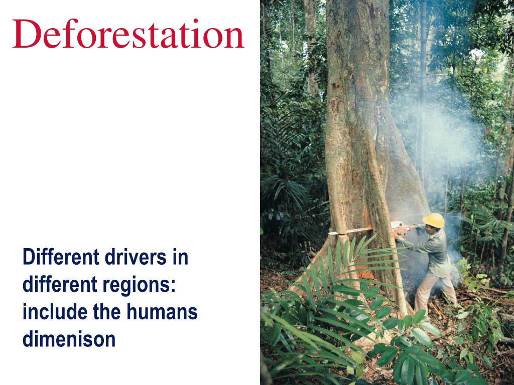 Emperical models of the dynamics of deforestation Period 1988 to 1989 degradation 5294 ha/year Closed forests Regrowth forest deforestation 8634 ha/year Agriculture Period 1986 to 1987 abandonment: 7203 ha/year Degradation: 1543 ha/year Closed bos deforested again 6210 ha/year Regowth forests deforestation: 4112 ha/year Agriculture abandonned: 2902 ha/year deforested again 1973 ha/year
