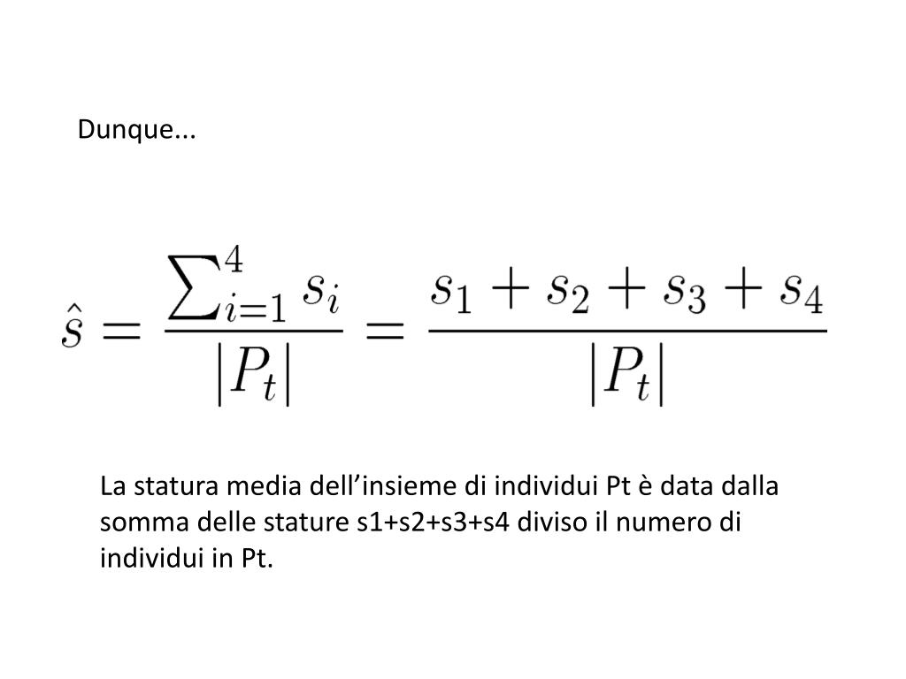 Dunque... La statura media dell’insieme di individui Pt è data dalla somma delle stature s1+s2+s3+s4 diviso il numero di individui in Pt.