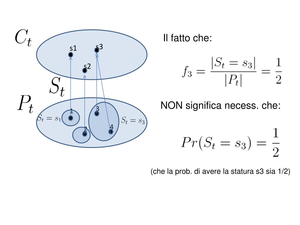 s3 s1 Il fatto che: s2 3 1 NON significa necess. che: 4 2 (che la prob. di avere la statura s3 sia 1/2)