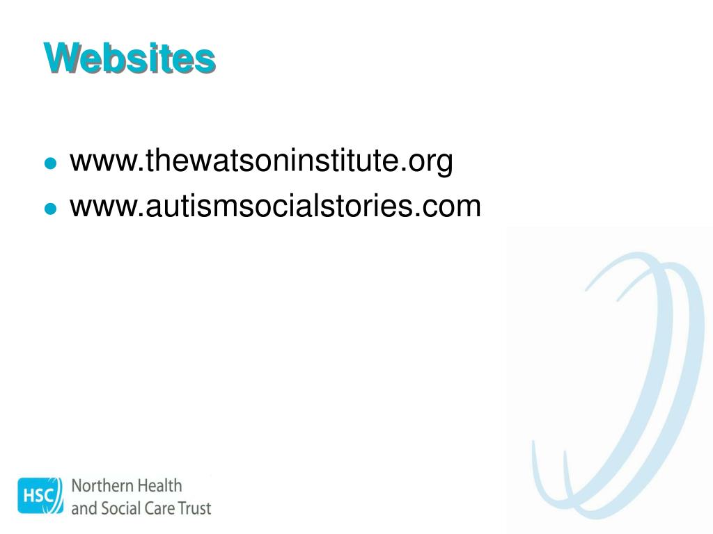 Websites • www.thewatsoninstitute.org • www.autismsocialstories.com