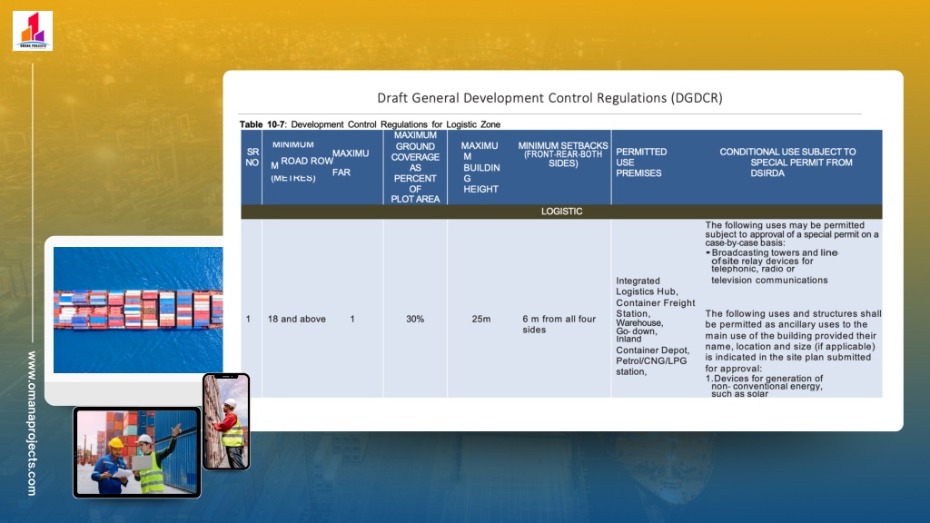 LOGISTICS FOCUS AREAS Dholera SIR is planned over a total land area of 920 sq km, with about 580 sq km designated as developable urban land, and within logistics zone occupies less than 0.1% of the total area. this, the itself www.omanaprojects.com