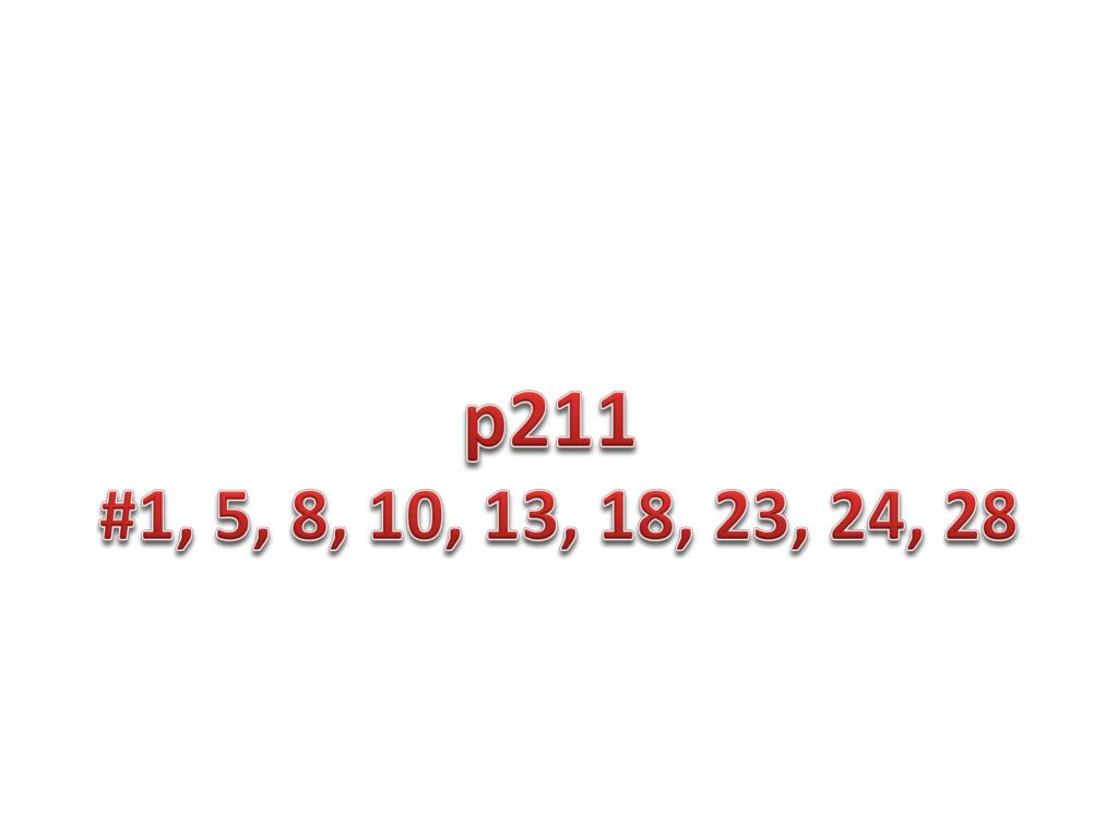 p211 #1, 5, 8, 10, 13, 18, 23, 24, 28
