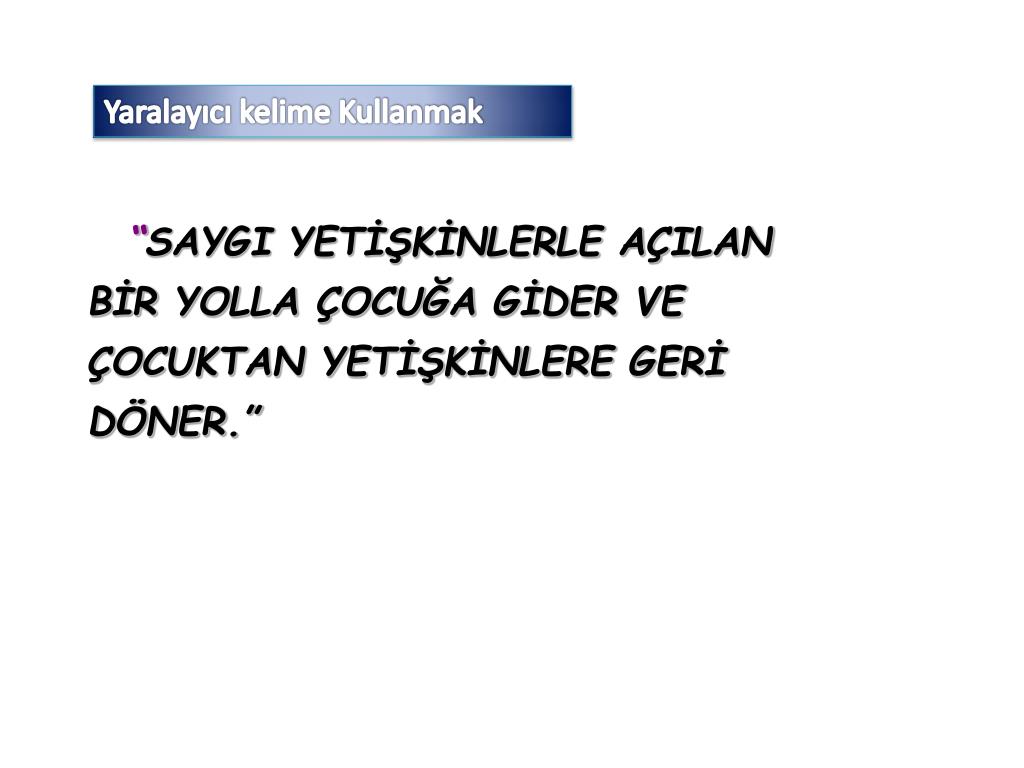 Yaralayıcı kelime Kullanmak “SAYGI YETİŞKİNLERLE AÇILAN BİR YOLLA ÇOCUĞA GİDER VE ÇOCUKTAN YETİŞKİNLERE GERİ DÖNER.”