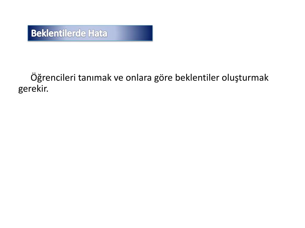 Beklentilerde Hata Öğrencileri tanımak ve onlara göre beklentiler oluşturmak gerekir.