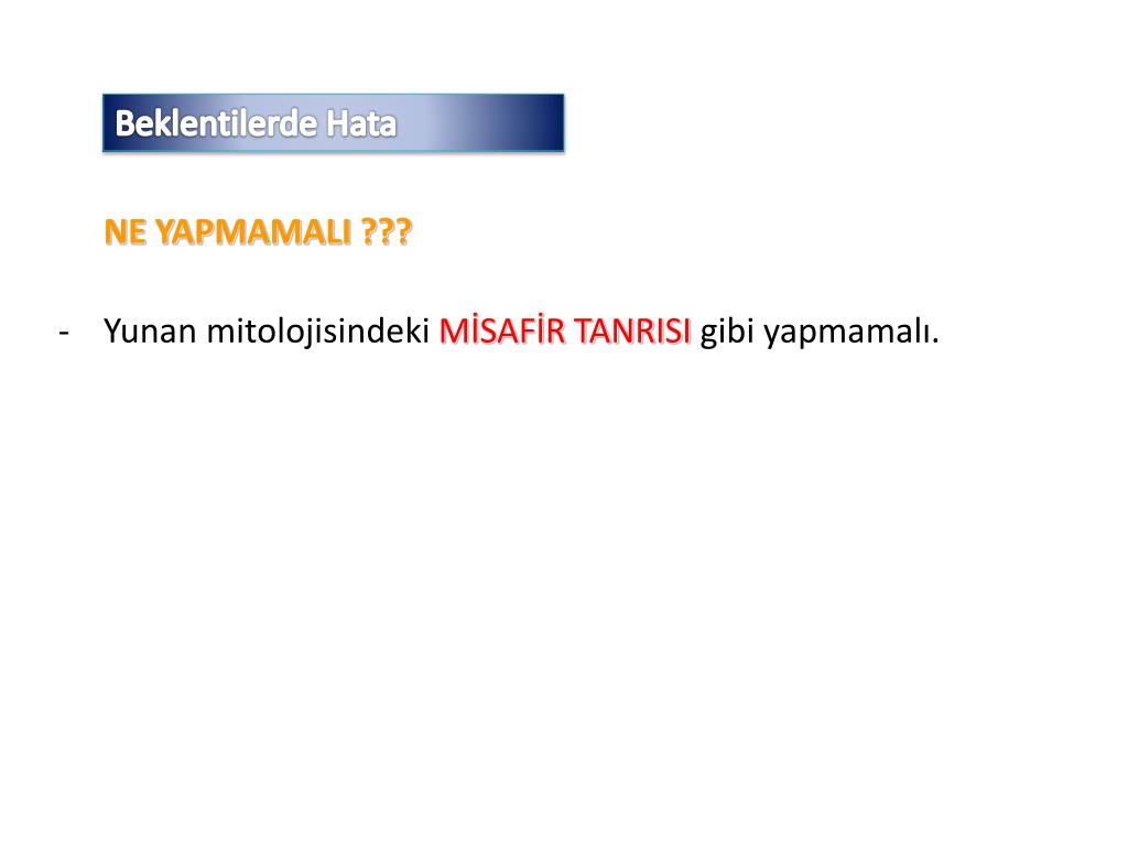 Beklentilerde Hata NE YAPMAMALI ??? • Yunan mitolojisindeki MİSAFİR TANRISI gibi yapmamalı.