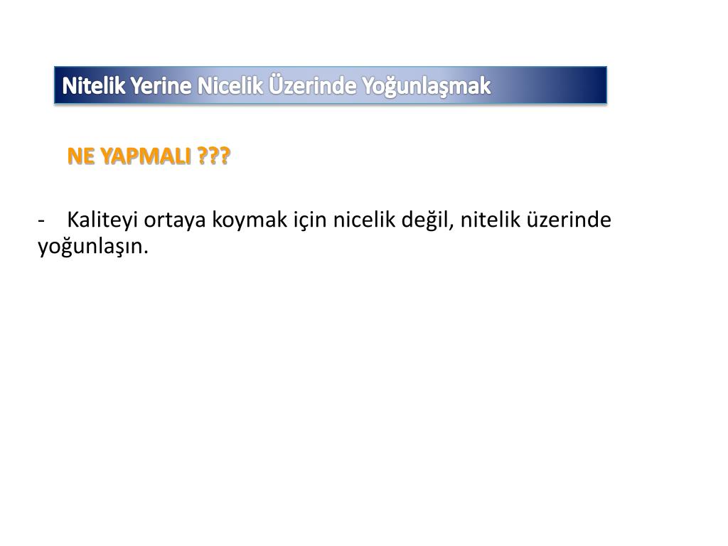 Nitelik Yerine Nicelik Üzerinde Yoğunlaşmak NE YAPMALI ??? • Kaliteyi ortaya koymak için nicelik değil, nitelik üzerinde yoğunlaşın.