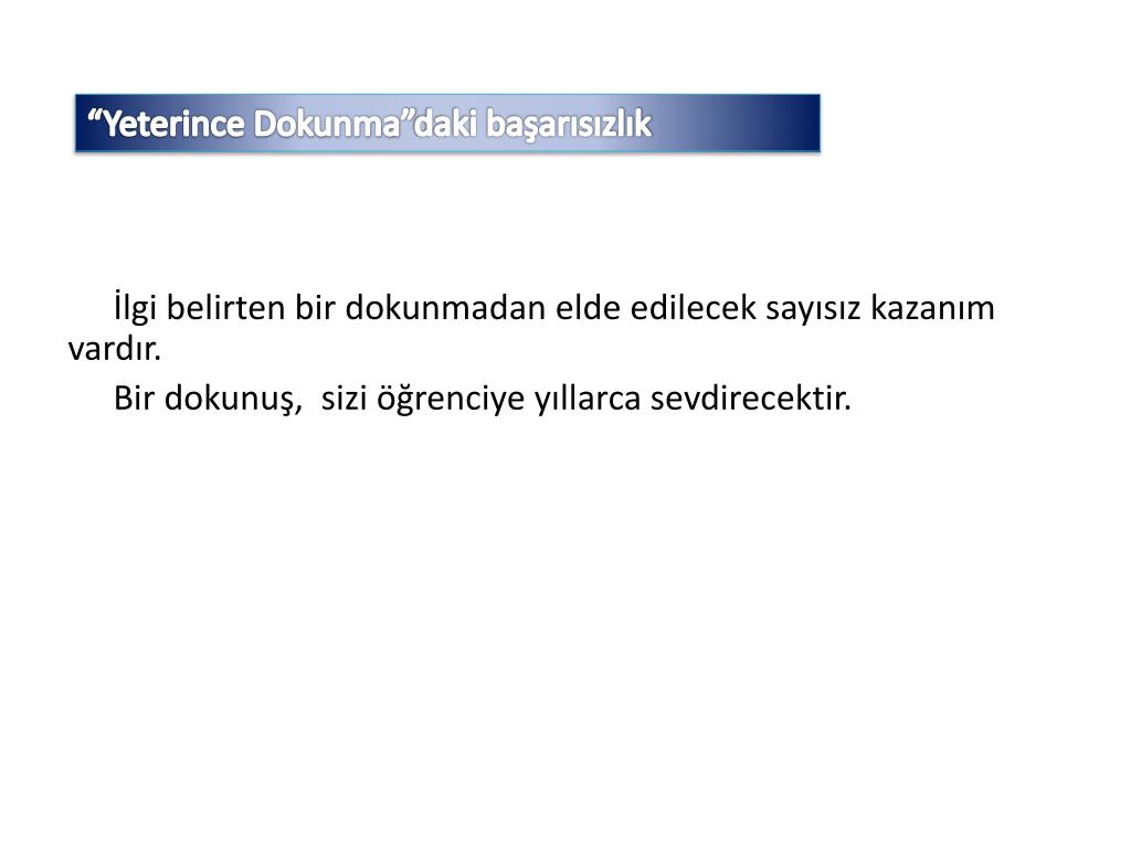 “Yeterince Dokunma”daki başarısızlık İlgi belirten bir dokunmadan elde edilecek sayısız kazanım vardır. Bir dokunuş, sizi öğrenciye yıllarca sevdirecektir.
