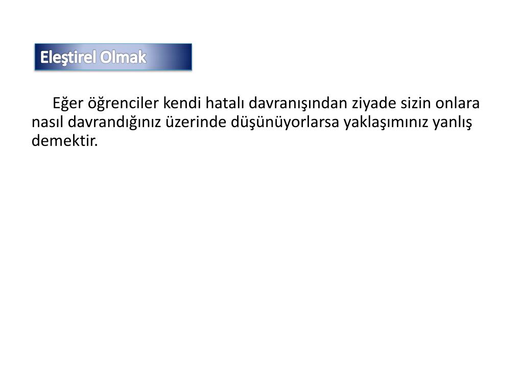 Eleştirel Olmak Eğer öğrenciler kendi hatalı davranışından ziyade sizin onlara nasıl davrandığınız üzerinde düşünüyorlarsa yaklaşımınız yanlış demektir.