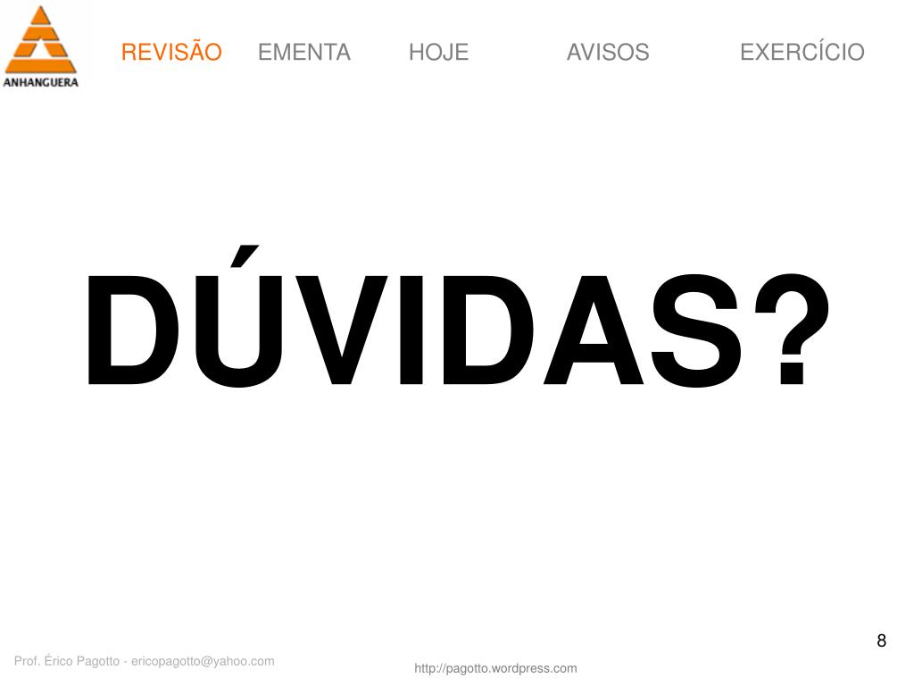 DÚVIDAS? REVISÃO Prof. Érico Pagotto - ericopagotto@yahoo.com
