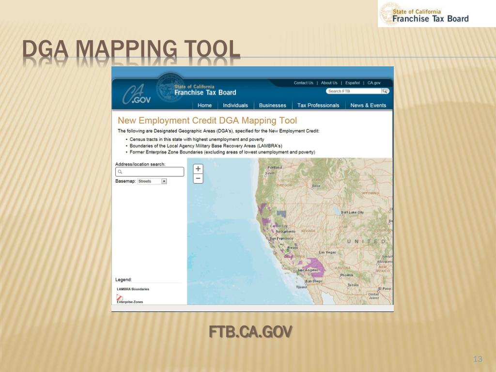 Designated Geographic Area Link to Designated Area Maps available at FTB.CA.GOV.