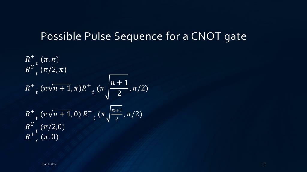 Possible Pulse Sequence for a CNOT gate Brian Fields