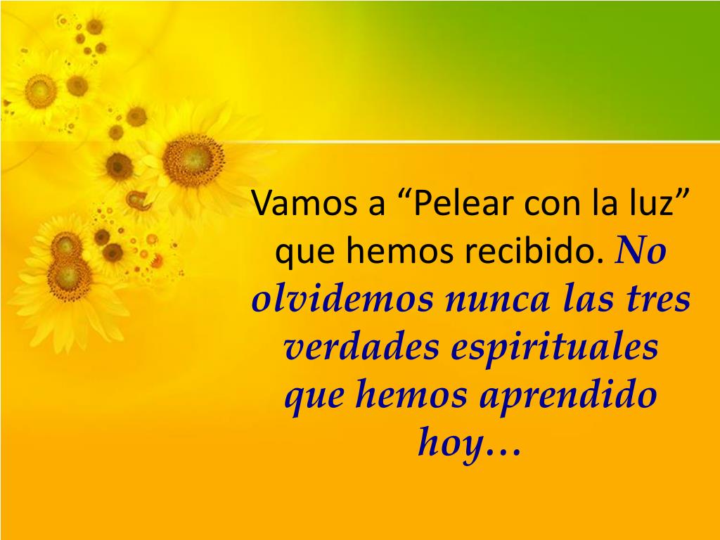 Vamos a “Pelear con la luz” que hemos recibido. No olvidemos nunca las tres verdades espirituales que hemos aprendido hoy…