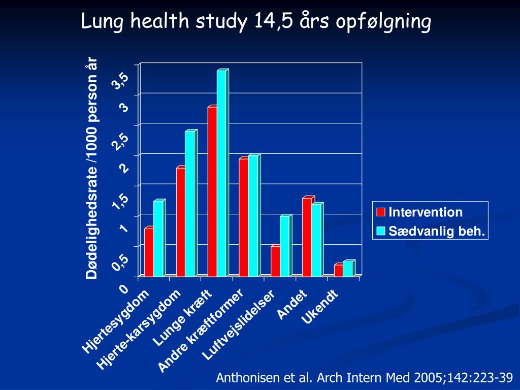 Lung health study 14,5 års opfølgning Dødelighedsrate /1000 person år Anthonisen et al. Arch Intern Med 2005;142:223-39