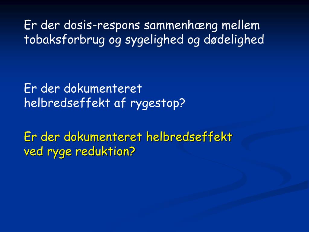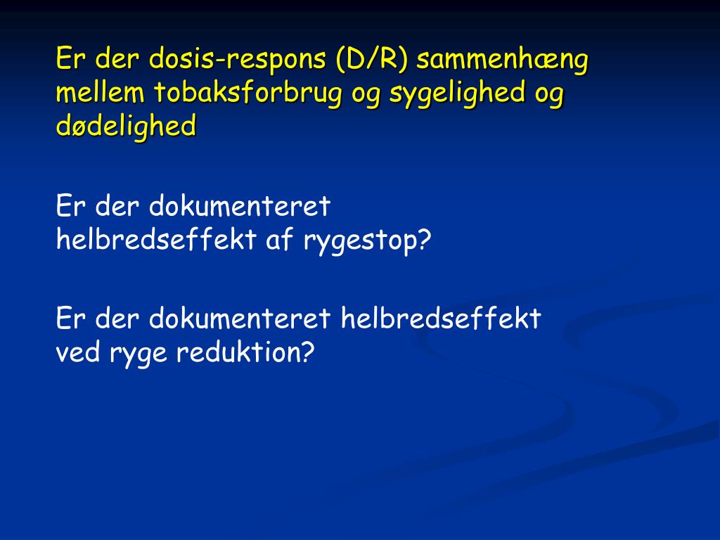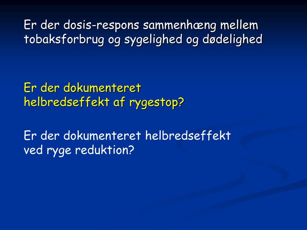 Er der dosis-respons sammenhæng mellem tobaksforbrug og sygelighed og dødelighed Er der dokumenteret helbredseffekt af rygestop? Er der dokumenteret helbredseffekt ved ryge reduktion?