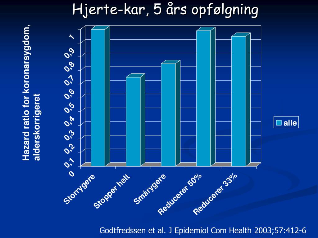 Hjerte-kar, 5 års opfølgning Hazard ratio for koronarsygdom, alderskorrigeret Godtfredssen et al. J Epidemiol Com Health 2003;57:412-6