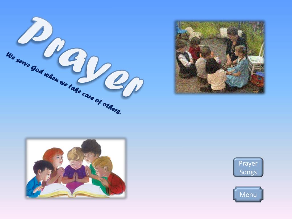 Prayer We serve God when we take care of others. Requests Prayer Songs Menu