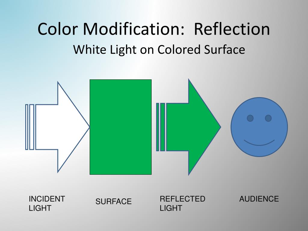 Color Modification: Reflection White Light on Colored Surface ? INCIDENT LIGHT REFLECTED LIGHT AUDIENCE SURFACE