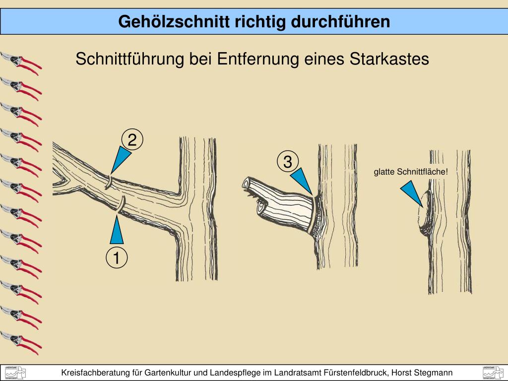 2 3 glatte Schnittfläche! 1 Schnittführung bei Entfernung eines Starkastes