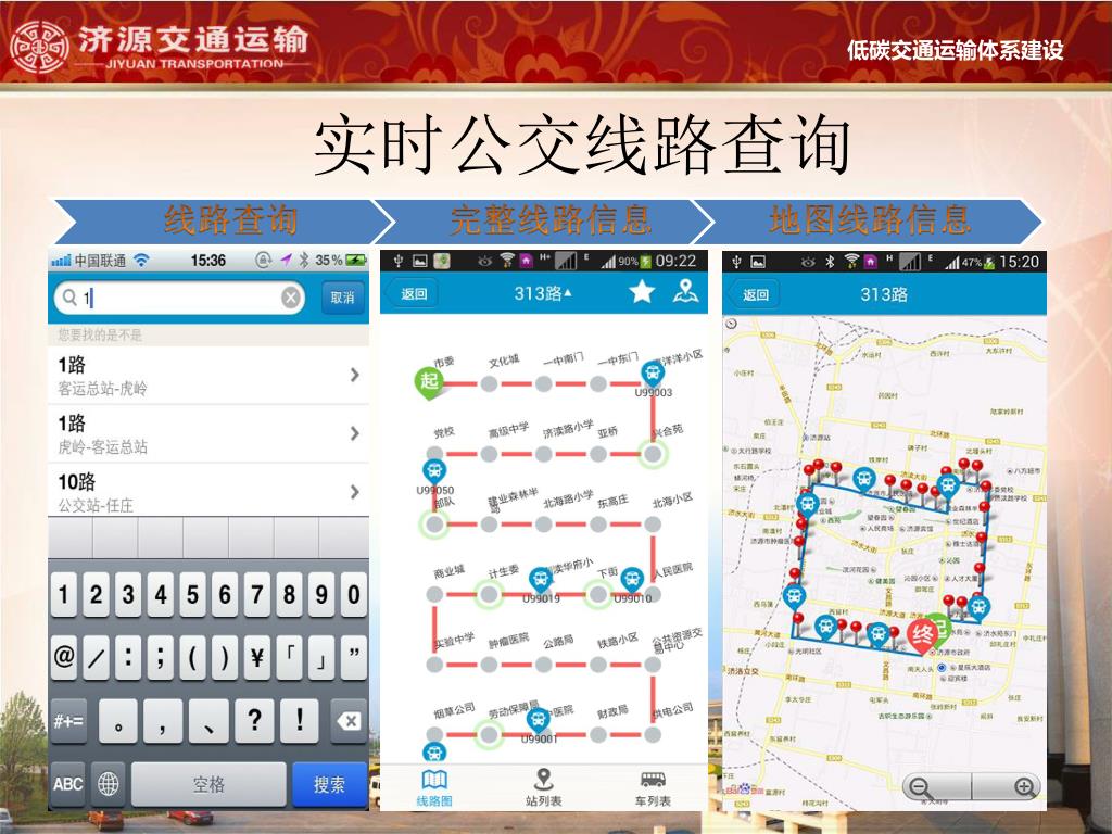 低碳交通运输体系建设 济源公众出行服务系统框架 济源公众出行信息服务系统为社会公众提供公交信息、公共自行车信息、出租车智慧电召、长途客运信息、铁路票务信息、民航票务信息、实时路况、周边公共设施信息等全方位、多方式、跨区域的出行信息服务,实现出行信息的动态发布,满足出行者个性化、多样化的出行需求,真正地为广大社会公众提供了切实有效的出行方便。