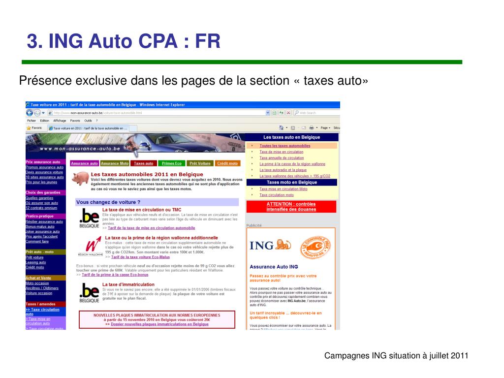 3. ING Auto CPA : FR Présence exclusive dans les pages de la section « taxes auto»