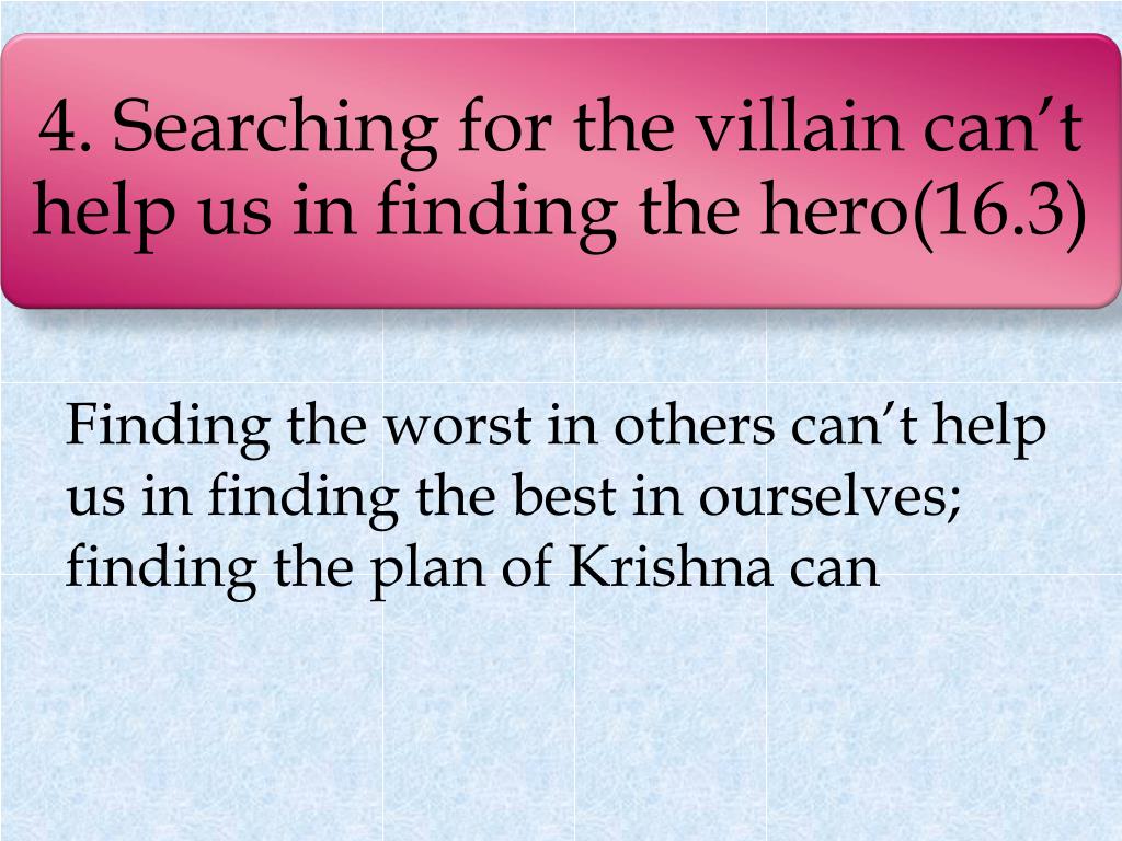 Finding the worst in others can’t help us in finding the best in ourselves; finding the plan of Krishna can