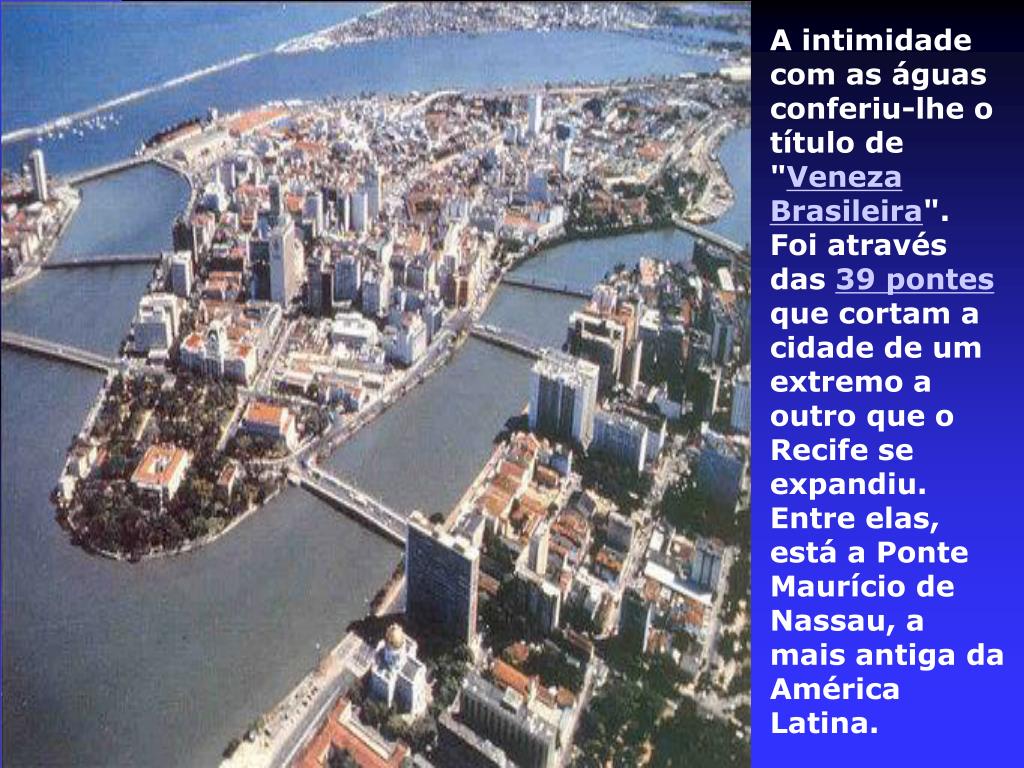 A intimidade com as águas conferiu-lhe o título de "Veneza Brasileira". Foi através das 39 pontes que cortam a cidade de um extremo a outro que o Recife se expandiu. Entre elas, está a Ponte Maurício de Nassau, a mais antiga da América Latina.