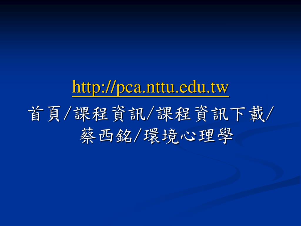 http://pca.nttu.edu.tw 首頁/課程資訊/課程資訊下載/蔡西銘/環境心理學
