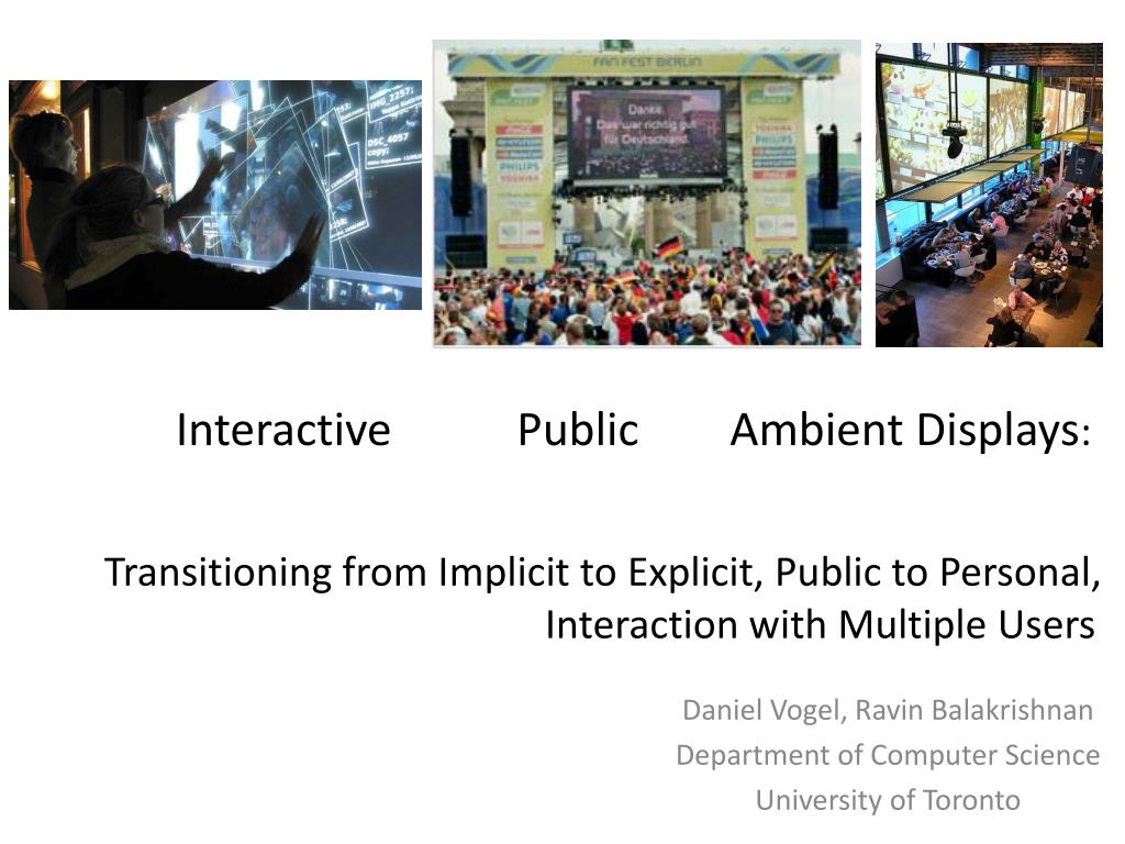 Transitioning from Implicit to Explicit, Public to Personal, Interaction with Multiple Users InteractivePublic Ambient Displays: Daniel Vogel, RavinBalakrishnan Department of Computer Science University of Toronto
