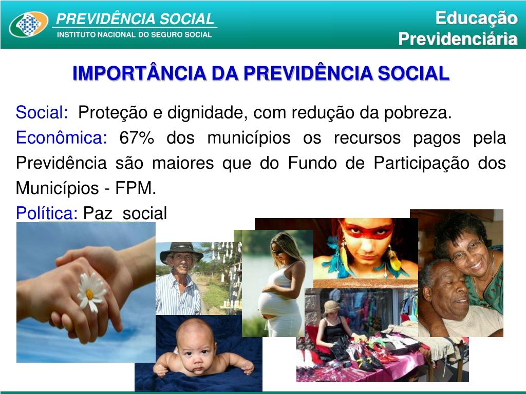 A Previdência Social constitui-se numa política pública social eficiente e exerce um papel fundamental na manutenção da sustentabilidade social do país.