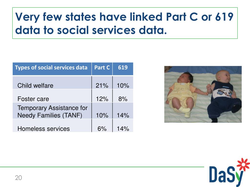 What is interesting about the information on linkages? • These can be linkages: • Within Part C and within 619 • Across Part C and 619 • With K12 education • With other early childhood program, social services, health data