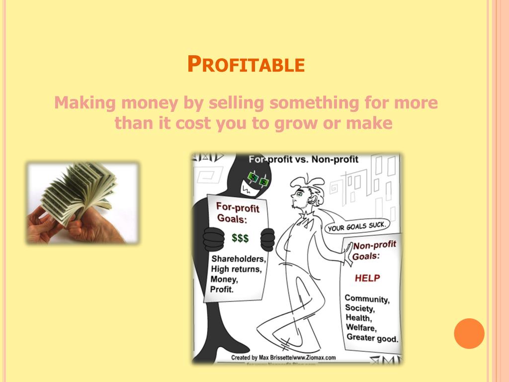 Profitable Making money by selling something for more than it cost you to grow or make