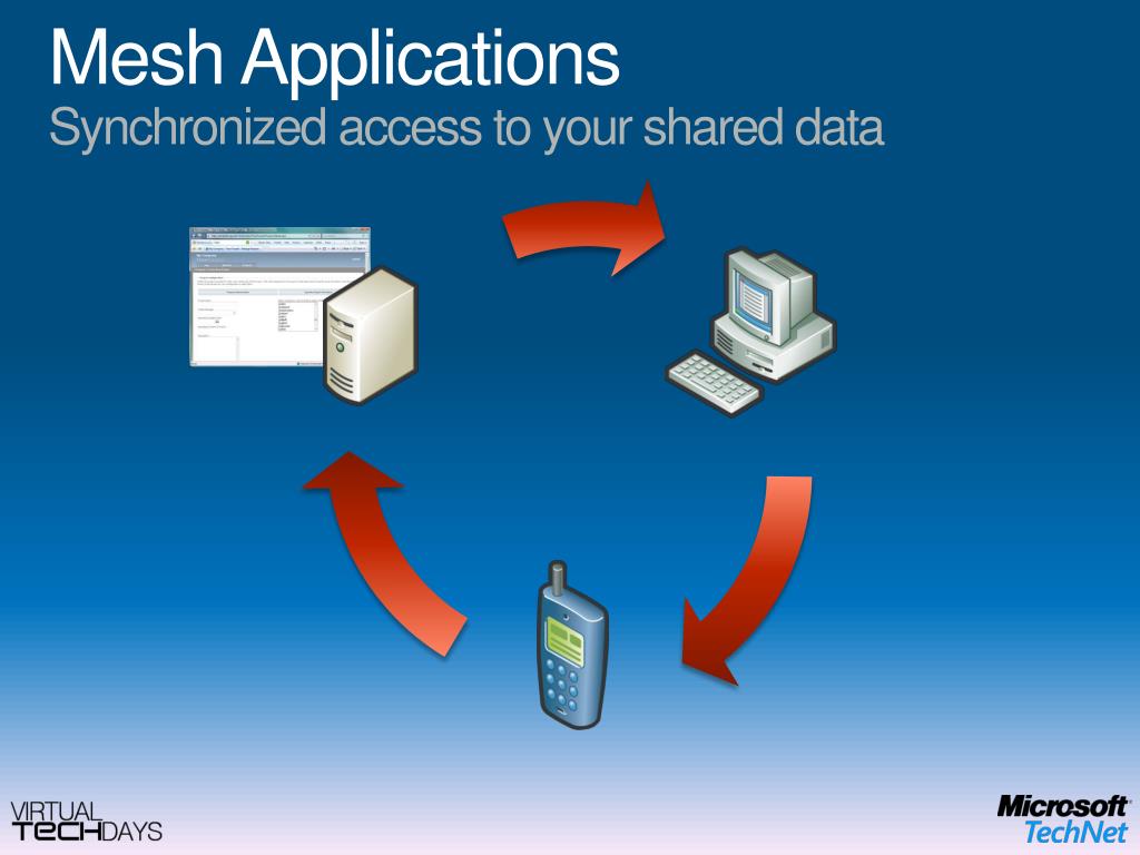 Conventional Application Choices Client Applications -- Rich -- Websites -- Reach -- Mesh-Enabled Web Applications • High points: • Access from anywhere • Instant On Updates • Sandboxed to Browser • deployment & Update • Discoverable • Shareable • Challenges: • Occasional Connection(offline) • Rich User Experience • Native User experience • Must be hosted at scale • High points: • Richer User experience • Native User Experience • occasionally connected (Offline) • Hosted on OS • Challenges: • Deployment & Update • Discoverability • Ability to share • Sandboxing & Access control