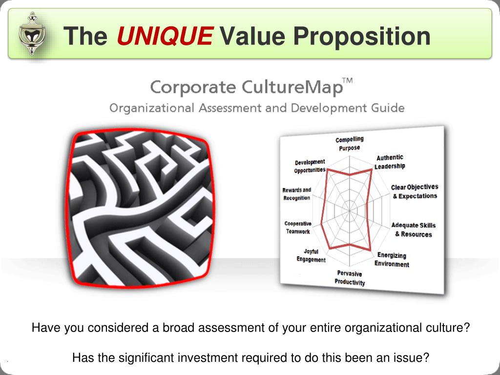 The UNIQUE Value Proposition Have you considered a broad assessment of your entire organizational culture? Has the significant investment required to do this been an issue?