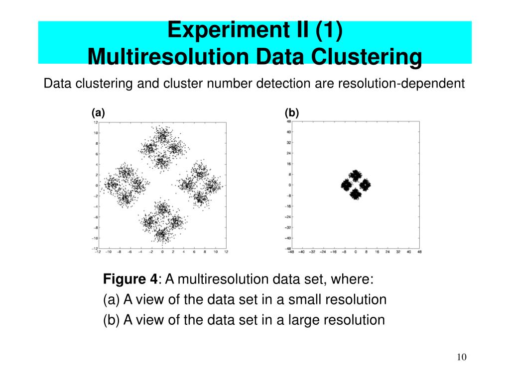 Experiment II (1)Multiresolution Data Clustering Data clustering and cluster number detection are resolution-dependent Figure 4: A multiresolution data set, where: (a) A view of the data set in a small resolution (b) A view of the data set in a large resolution