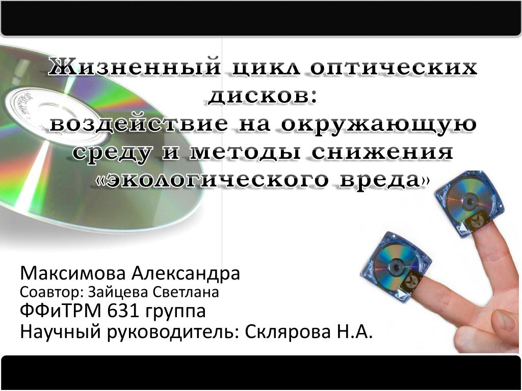 Жизненный цикл оптических дисков: воздействие на окружающую среду и методы снижения «экологического вреда». Максимова Александра Соавтор: Зайцева Светлана ФФиТРМ 631 группа Научный руководитель: Склярова Н.А.