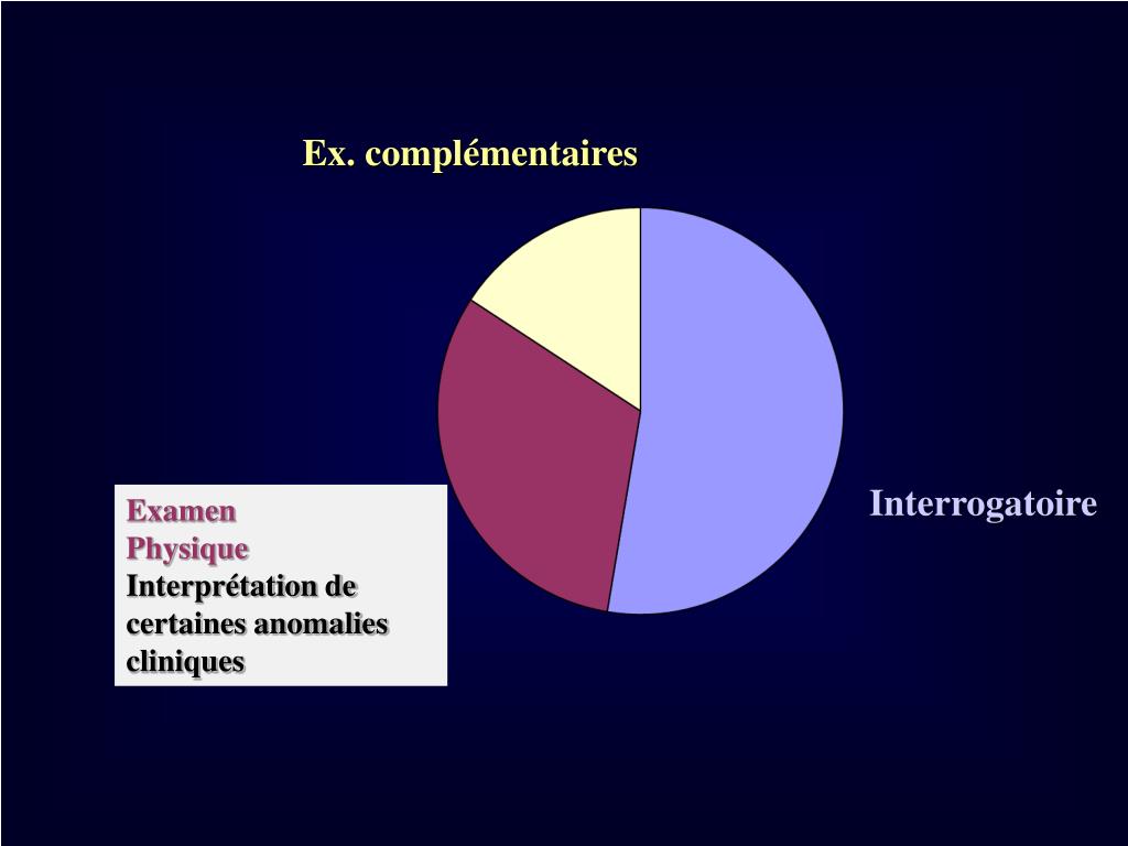 Ex. complémentaires Interrogatoire Examen Physique Interprétation de certaines anomalies cliniques