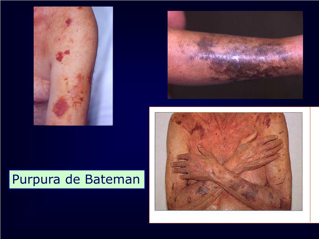 Particularités cliniques (7)Examen cutané • La peau : fine, atrophique, aisément plissée • Coloration • Visage pores élargis • Tronc : verrues séborrhéiques, taches rubis • Kératoses préépithéliomateuses • Ephilides séniles • Pseudo cicatrices blanchâtres • Purpuras vasculaires
