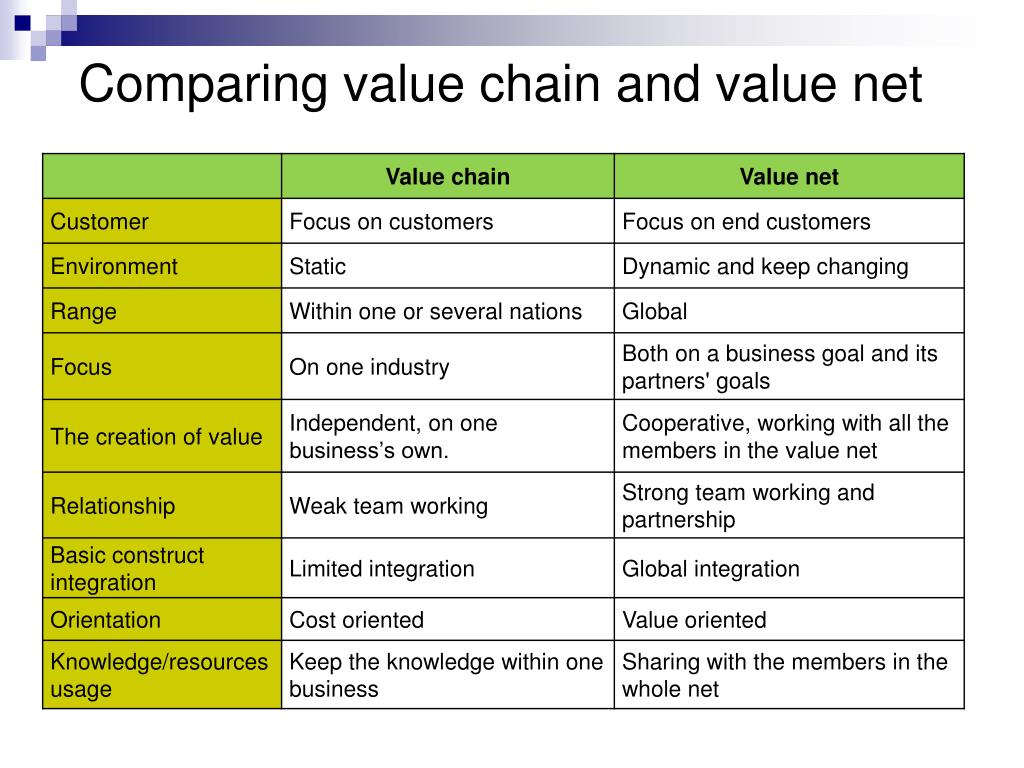 The concept of value net • In the value net, the business is around by other businesses including suppliers ,partners and customer companies • A value net of one business may be included in another bigger value net. • Integration of the organizations in the value net • Information/ resources are open for sharing • Real-time sharing
