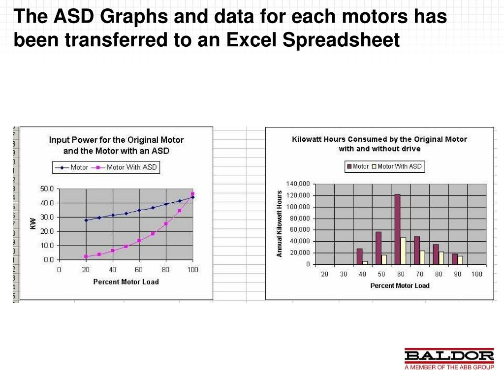 The ASD Graphs and data for each motors has been transferred to an Excel Spreadsheet