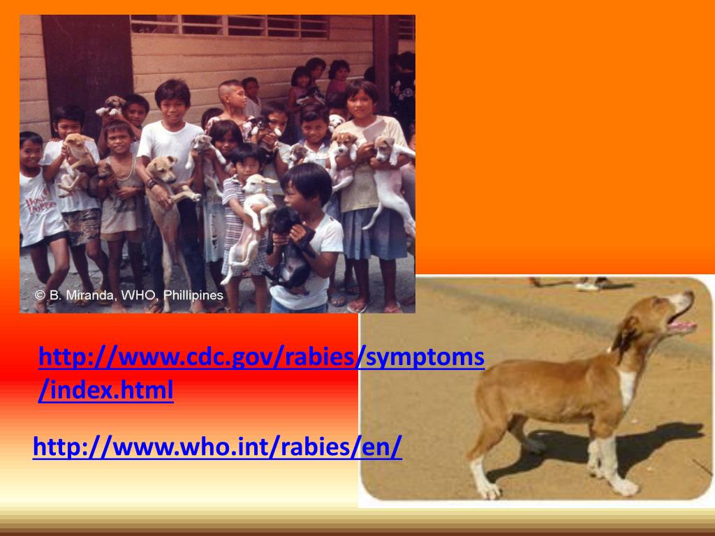 http://www.cdc.gov/rabies/symptoms/index.html http://www.who.int/rabies/en/